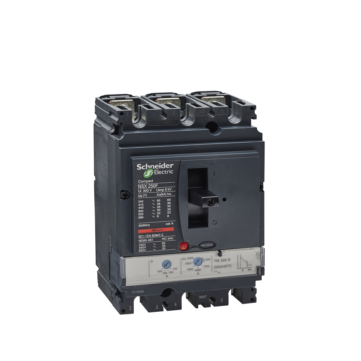 کليد اتوماتیک 200 آمپر اشنایدر سه پل 36kA حفاظت TM-D کد فنی: LV431631