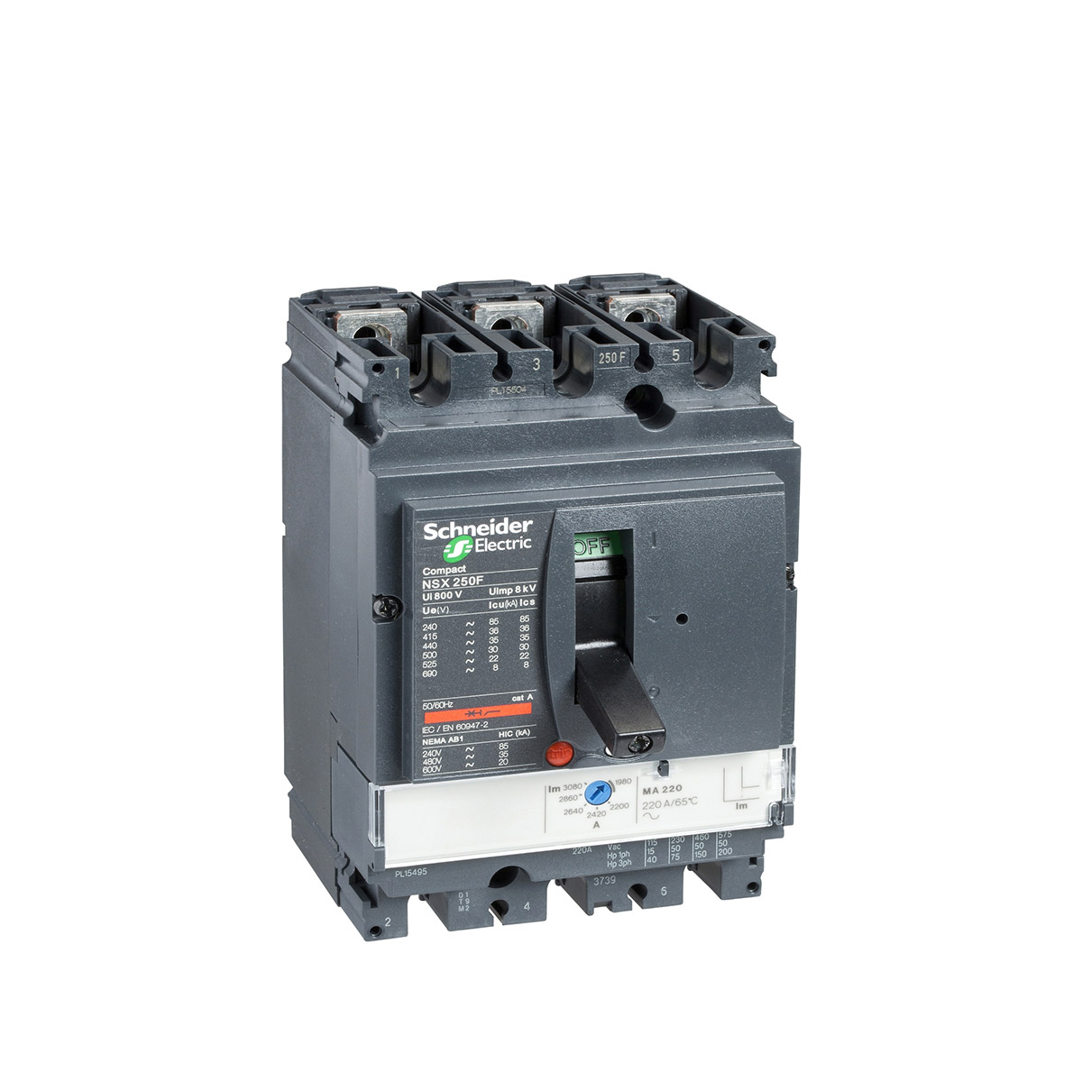 کليد اتوماتیک 220 آمپر اشنایدر سه پل 70kA حفاظت MA کد فنی: LV431756