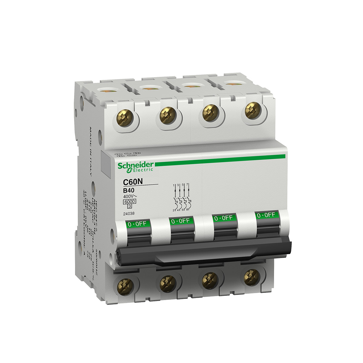 کلید مينياتوری چهار پل 6 آمپر 6kA اشنایدر روشنایی AC کد فنی: 24101-SE